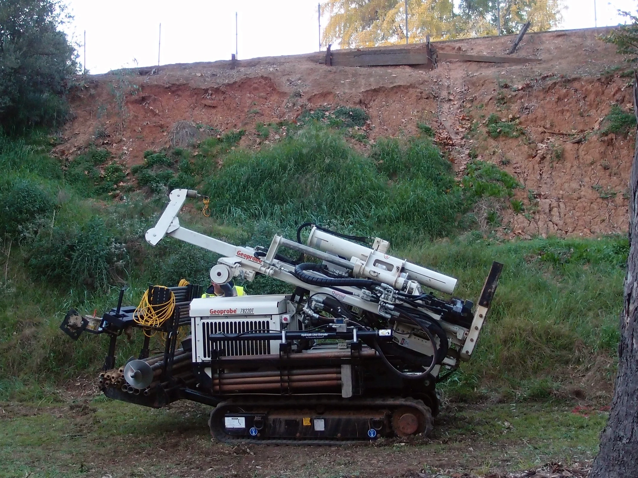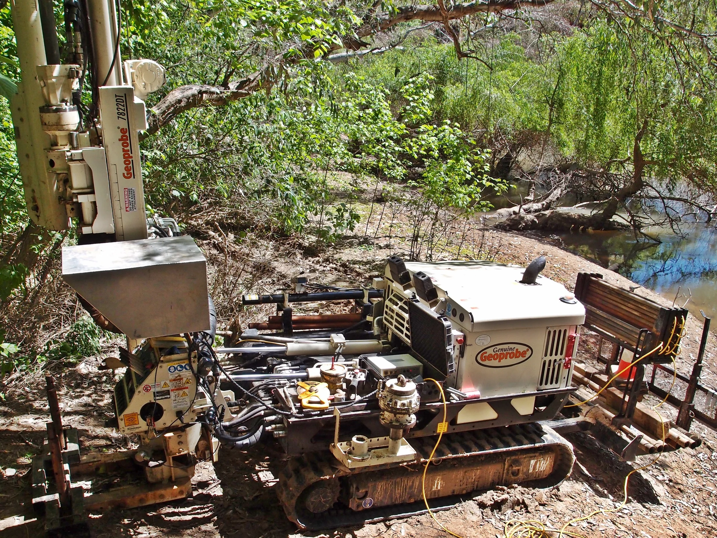 Geoprobe tracked down slopes and between trees where trucks would not fit.